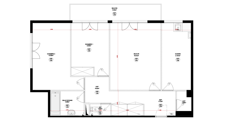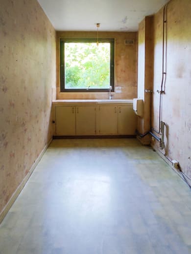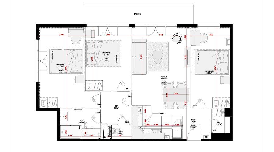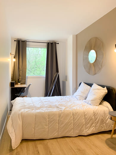 Ce grand appartement familial a été transformé en une collocation avec 3 chambres. Pour ce faire, nous avons cassé la cloison séparant le séjour de l'entrée puis installé une nouvelle pour conserver un couloir. La cuisine a été déplacé dans ce nouvel espace de vie près de la porte d'entrée. Ainsi, nous avons pu aménager une troisième chambre dans l'ancienne cuisine.
