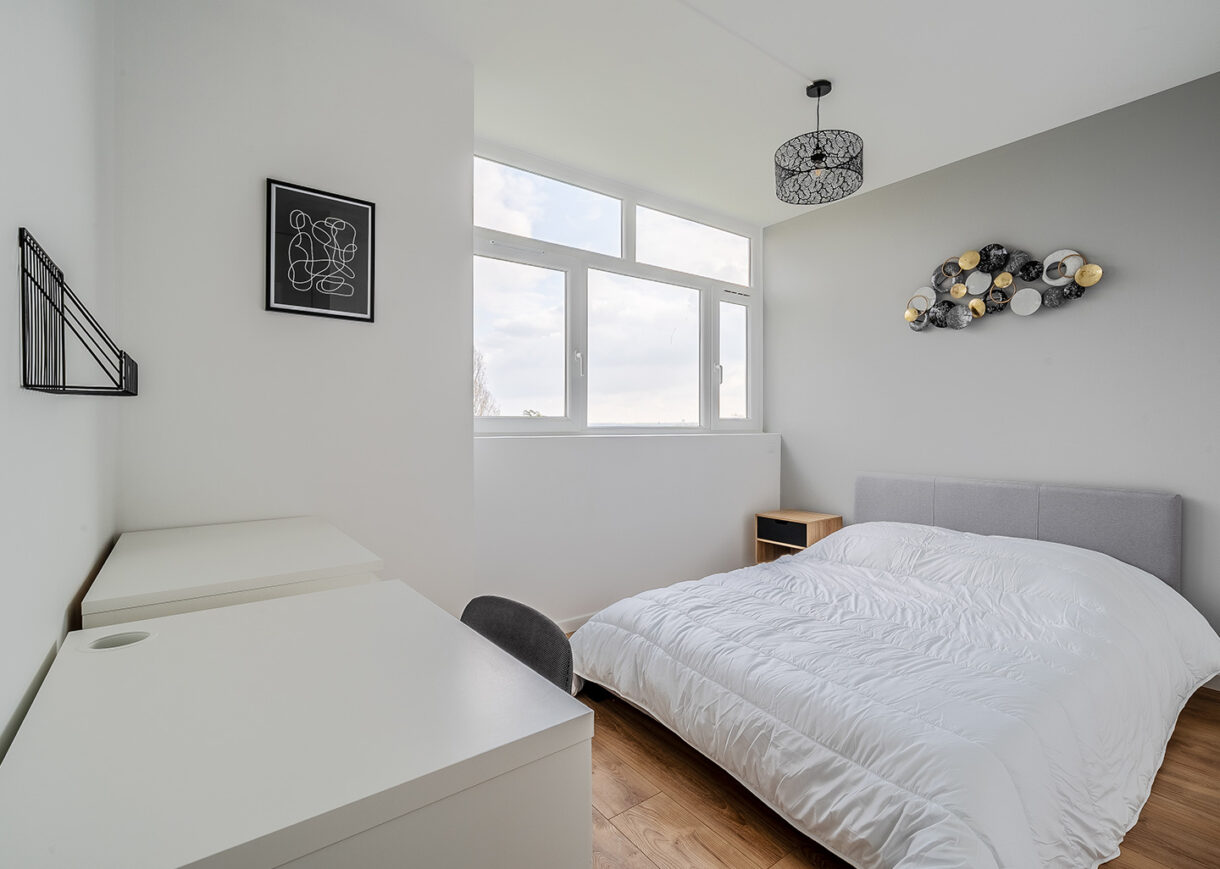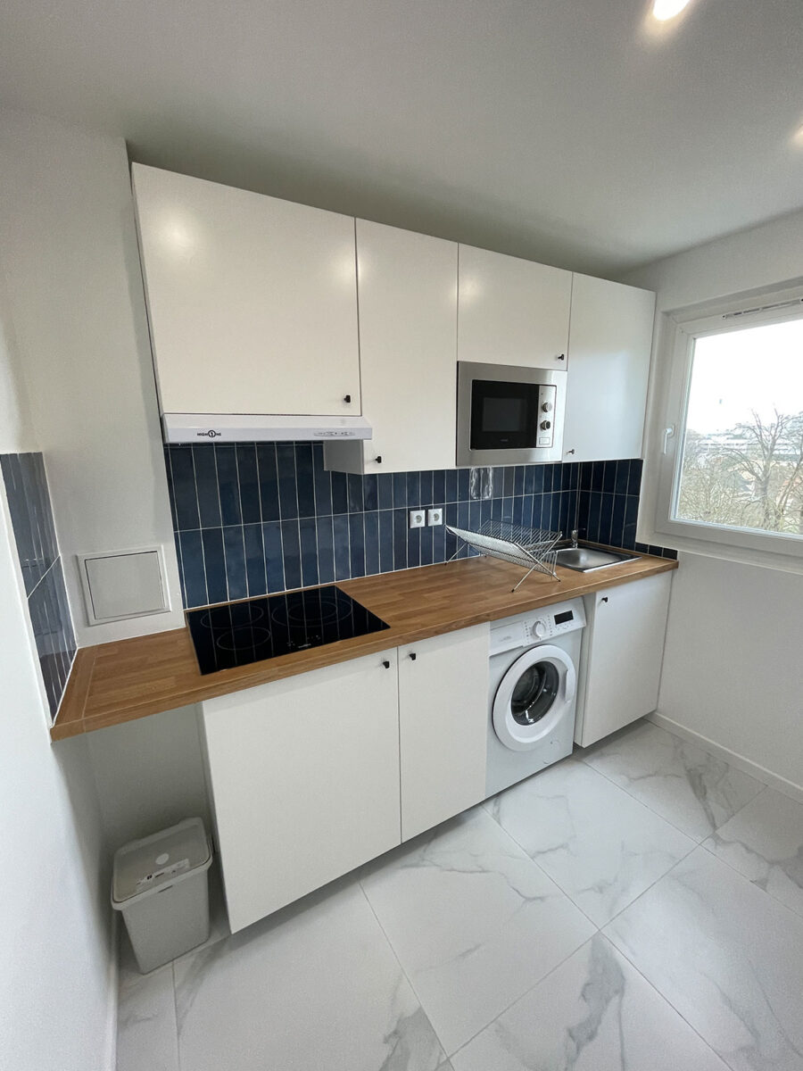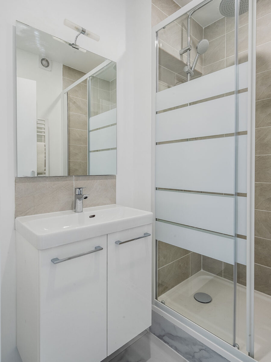 L’objectif des travaux était double : améliorer la rentabilité tout en garantissant un bon niveau de confort pour les futurs occupants. Pour cela, nous avons créé une quatrième chambre, afin de valoriser pleinement la surface et de permettre une occupation plus intensive du logement. Nous avons également ajouté une douche privative dans la chambre la plus éloignée, un atout particulièrement apprécié en colocation, et modernisé les équipements de la cuisine pour faciliter la vie quotidienne des colocataires. Enfin, une attention particulière a été portée à l’amélioration de la performance énergétique, un levier important pour sécuriser durablement l’investissement de notre client face aux évolutions réglementaires à venir.