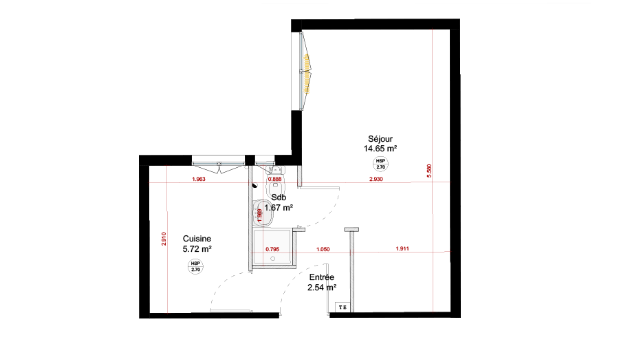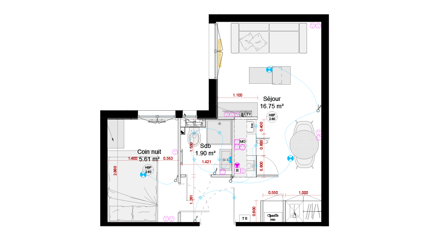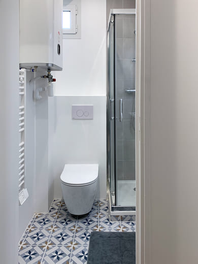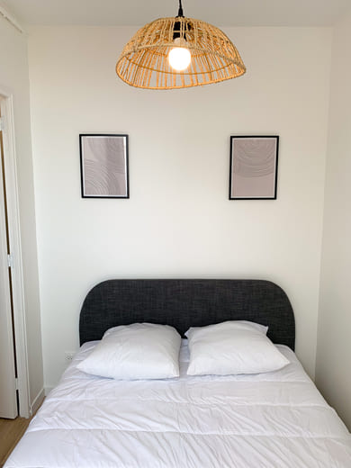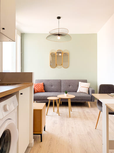 La rénovation de cet appartement avait pour objectif d'ajouter un espace nuit et d'améliorer le confort de la salle d'eau. En ouvrant le séjour grâce à la démolition du sas d'entrée, nous avons pu y intégrer la cuisine avec un espace dédié pour les repas. L'amélioration majeure réside dans la transformation de l'ancienne cuisine en une chambre à coucher, augmentant ainsi la valeur locative de l'appartement. Cette configuration est particulièrement attrayante pour un jeune couple qui souhaite accueillir des invités tout en bénéficiant d'une chambre privée pour plus d'intimité.