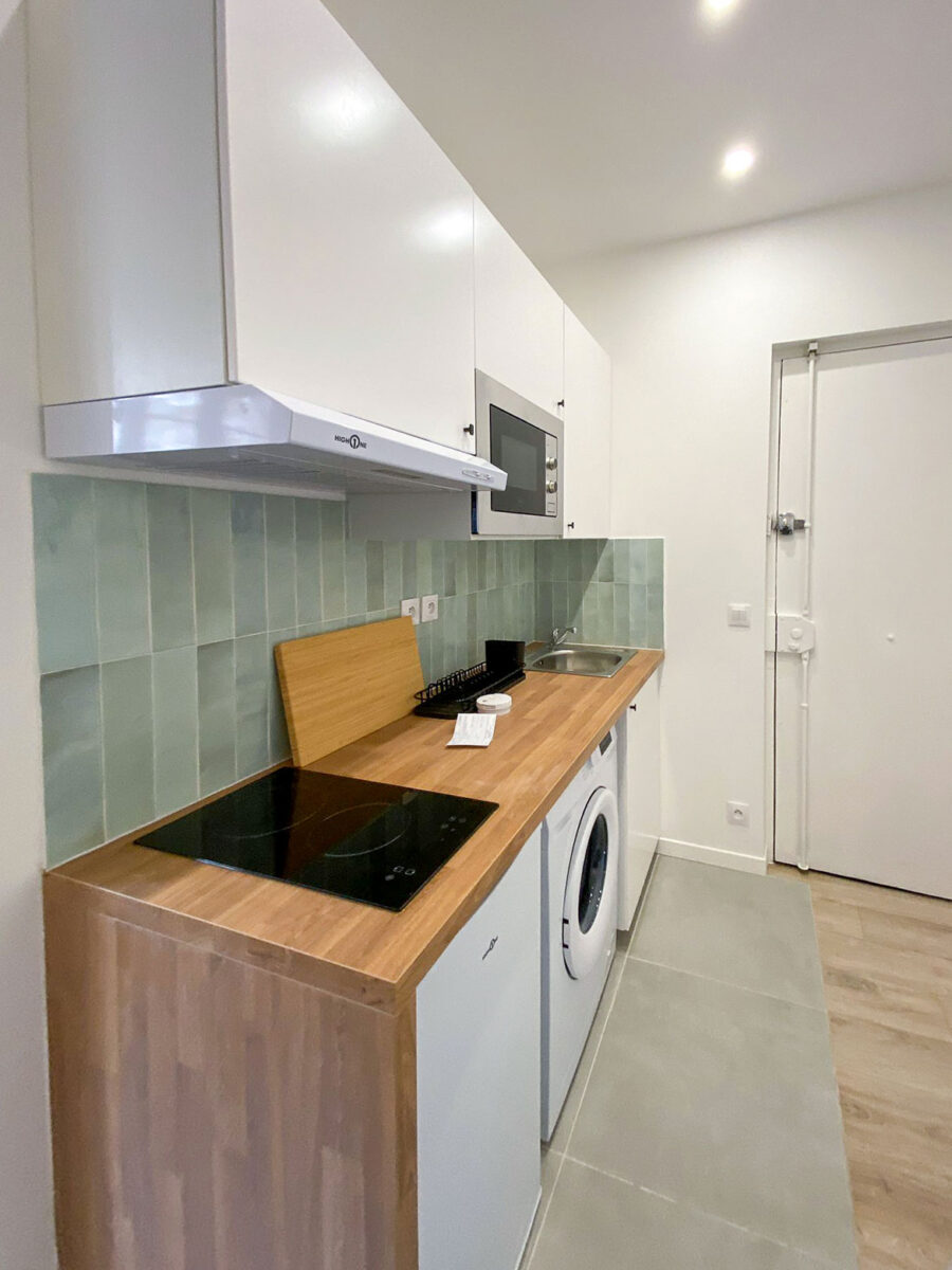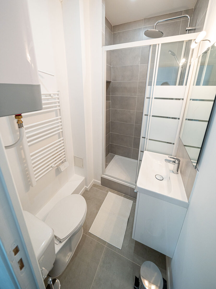 Nous avons concentré la rénovation sur l'optimisation de l'espace afin d'offrir une cuisine mieux équipée et une salle d'eau avec une cabine de douche. Ces améliorations apportent plus de confort et attirent non seulement des étudiants, mais aussi des jeunes actifs. Nous avons également amélioré le DPE et rénové les revêtements.