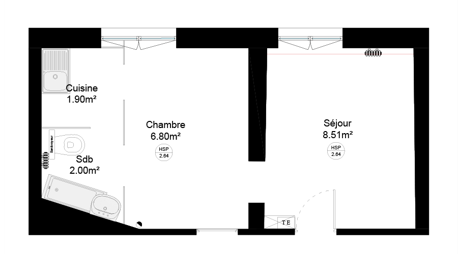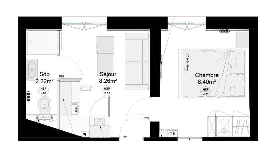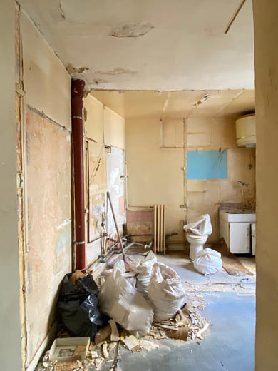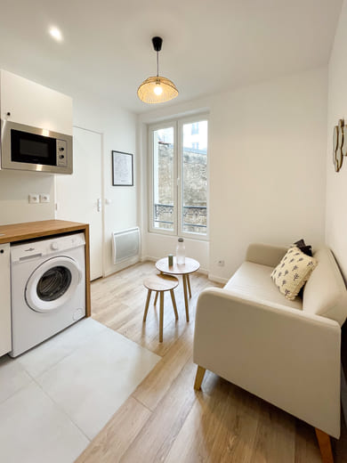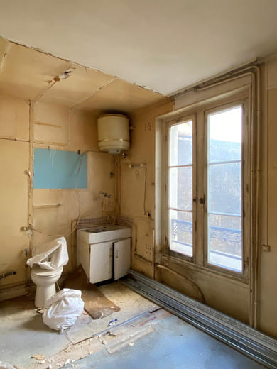 Le principal objectif de la rénovation a été d'assainir le logement et d'améliorer le DPE. Nous avons ouvert le volume du séjour pour offrir un vrai espace de vie aux locataires. La salle de bain a été optimisée avec une vraie cabine de douche et la cuisine a été agrandie pour offrir plus de plans de travail. Ces équipements permettent d'apporter du confort et de valoriser le loyer.