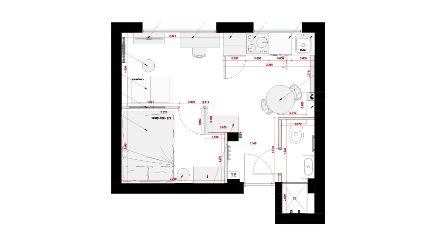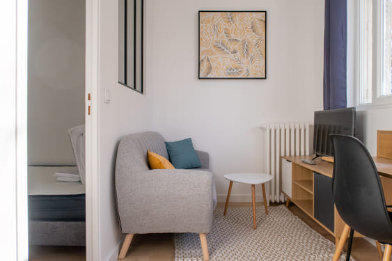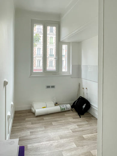 Cet ancien studio a été reagencé en T2 grâce aux travaux d'optimisation de l'espace. Nous avons créé une chambre en divisant la surface du séjour qui a elle-même augmentée en enlevant la grande cloison de l'ancienne cuisine. Ainsi, nous avons pu installé une nouvelle cuisine en longueur en conservant une surface agréable dans le séjour. Nous avons également diminué la superficie de la salle d'eau qui était trop grande. On a donc un appartement optimisé qui pourra attirer des jeunes actifs avec une meilleure rentabilité que s'il s'agissait d'un studio.